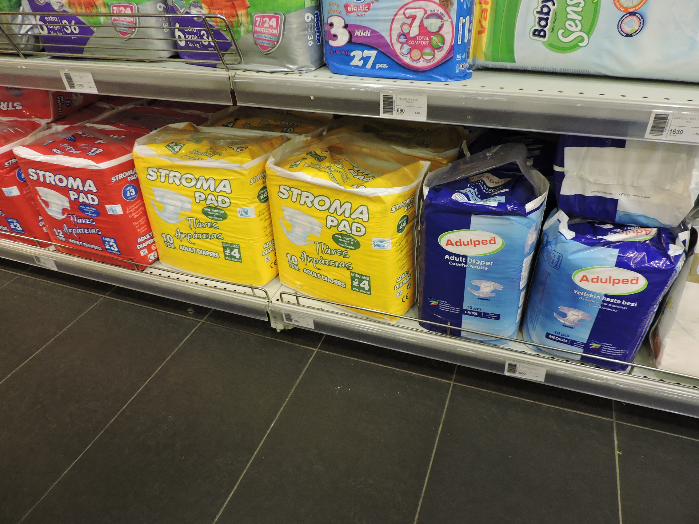 Very interesting Tewi. I would not have expected the adult diapers to be featured so prominently. Thanks for the great pictures!